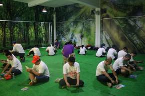 經(jīng)過為期一天的拓展訓(xùn)練,隊員之間形成了良好的默契。在拓展訓(xùn)練結(jié)束前完成“繪制生命樹”項目的同時,教練組織隊員們進行總結(jié),反省拓展訓(xùn)練完成過程中的不足。有的隊員把拓展活動過程中需要的團結(jié)協(xié)作與工作中類似的情況做了比較,談了內(nèi)心的感受;有的隊員談到溝通在完成拓展活動與工作生活中所占據(jù)的重要地位與作用;有的隊員則看出問題和可以改善的地方,通過相互交流,隊員們發(fā)現(xiàn)每個拓展訓(xùn)練項目的設(shè)計都是有特定啟發(fā)意義的。